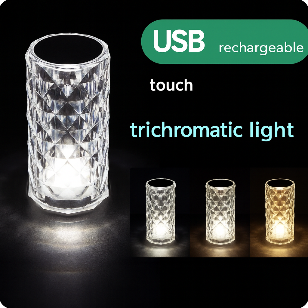 Crystal Rose Lamp — a cozy, touch-controlled light that adds magic to any space.